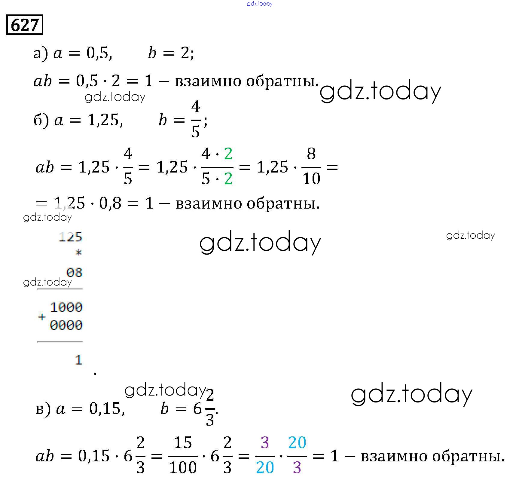 Ответы к §3. Умножение и деление обыкновенных дробей Решение к главе 1 627 Учебнику по Математике для 6 класса Виленкин, Жохов Мнемозина 2014