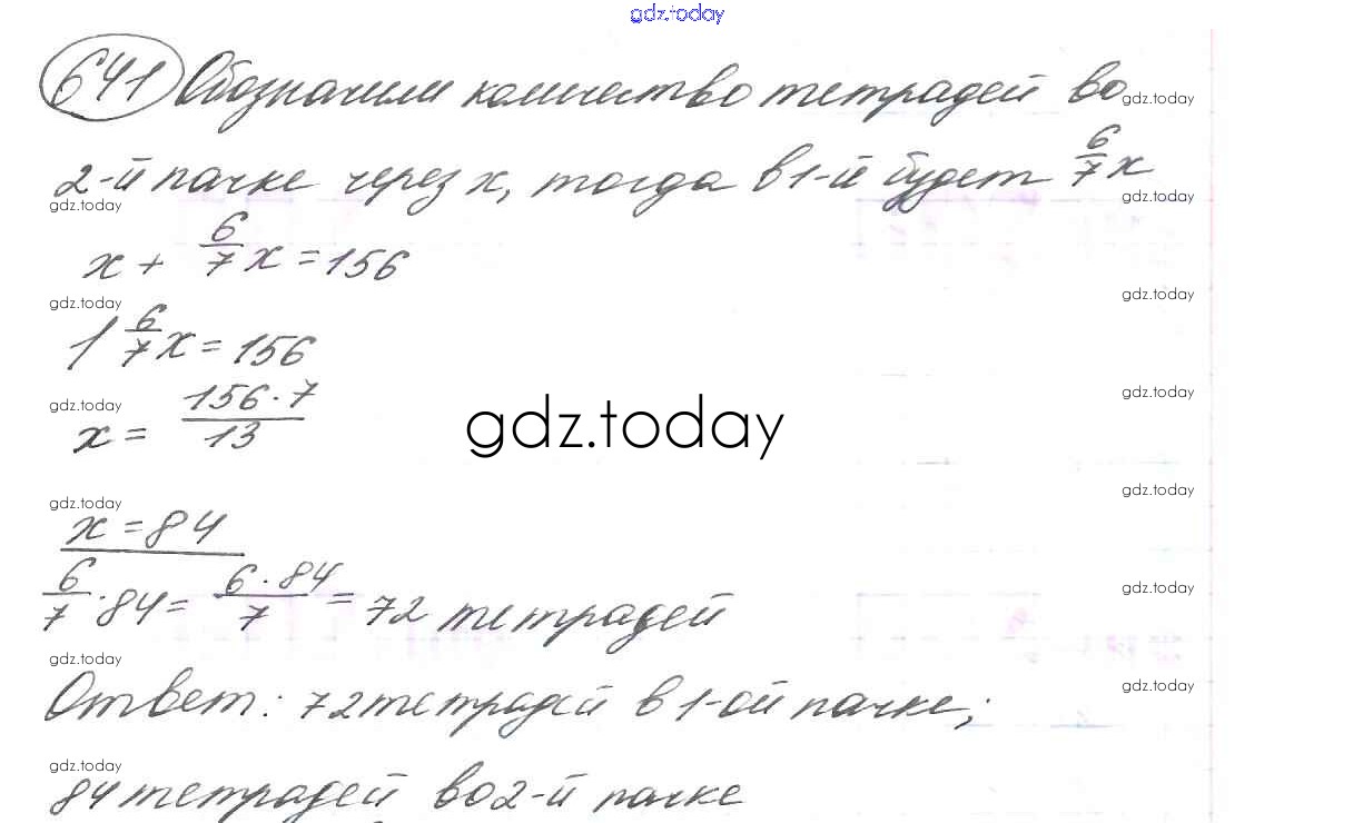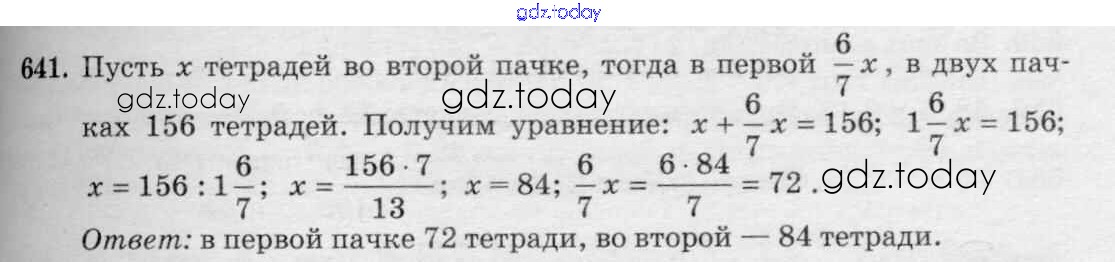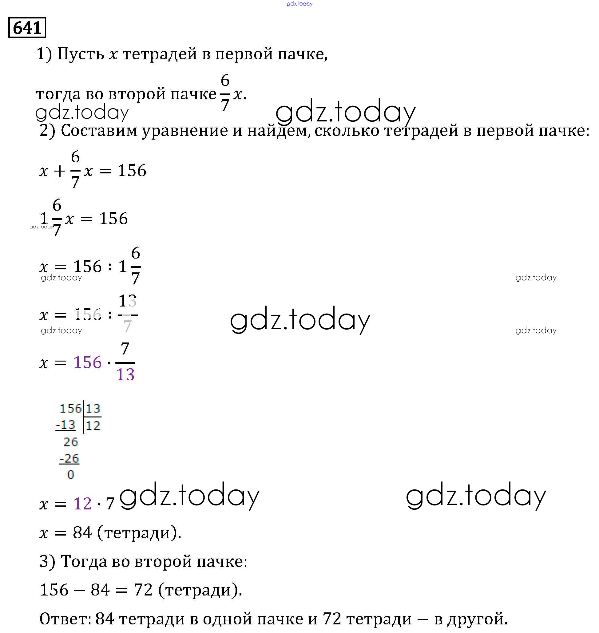 Ответы к §3. Умножение и деление обыкновенных дробей Решение к главе 1 641 Учебнику по Математике для 6 класса Виленкин, Жохов Мнемозина 2014