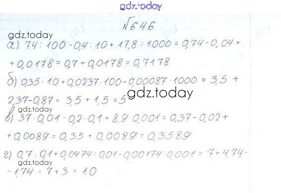 На страницах сайта gdz.today вы найдете учебный и вспомогательный материал, направленный на улучшения знаний школьной программы. ГДЗ - онлайн мир знаний §3. Умножение и деление обыкновенных дробей Решение к главе 1 646 Учебнику по Математике для 6 класса Виленкин, Жохов Мнемозина 2014