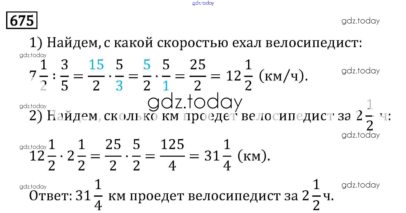 На страницах сайта gdz.today вы найдете учебный и вспомогательный материал, направленный на улучшения знаний школьной программы. ГДЗ - онлайн мир знаний §3. Умножение и деление обыкновенных дробей Решение к главе 1 675 Учебнику по Математике для 6 класса Виленкин, Жохов Мнемозина 2014