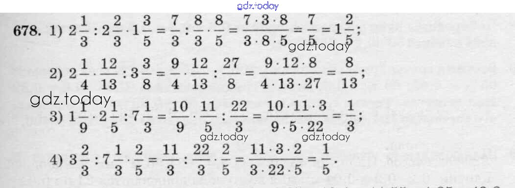 Ответы к §3. Умножение и деление обыкновенных дробей Решение к главе 1 678 Учебнику по Математике для 6 класса Виленкин, Жохов Мнемозина 2014