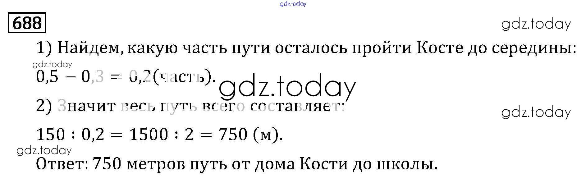 Ответы к §3. Умножение и деление обыкновенных дробей Решение к главе 1 688 Учебнику по Математике для 6 класса Виленкин, Жохов Мнемозина 2014