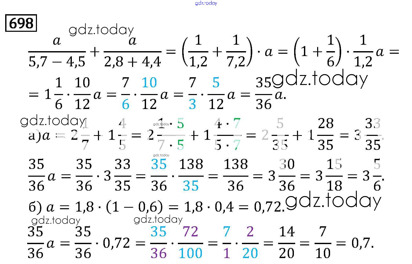 На страницах сайта gdz.today вы найдете учебный и вспомогательный материал, направленный на улучшения знаний школьной программы. ГДЗ - онлайн мир знаний §3. Умножение и деление обыкновенных дробей Решение к главе 1 698 Учебнику по Математике для 6 класса Виленкин, Жохов Мнемозина 2014
