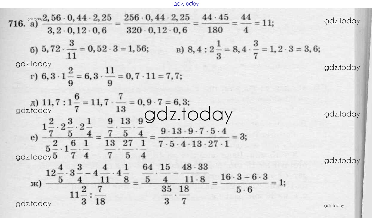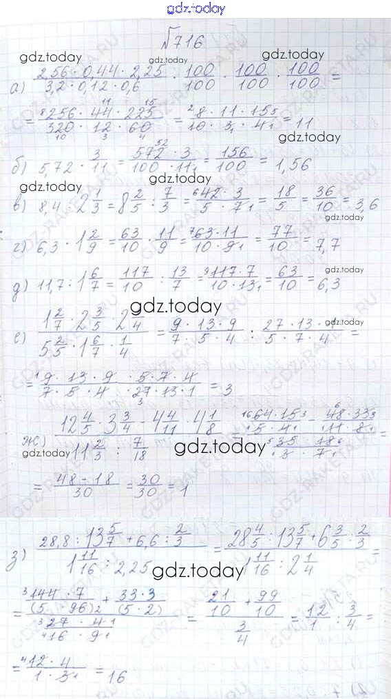 На страницах сайта gdz.today вы найдете учебный и вспомогательный материал, направленный на улучшения знаний школьной программы. ГДЗ - онлайн мир знаний §3. Умножение и деление обыкновенных дробей Решение к главе 1 716 Учебнику по Математике для 6 класса Виленкин, Жохов Мнемозина 2014