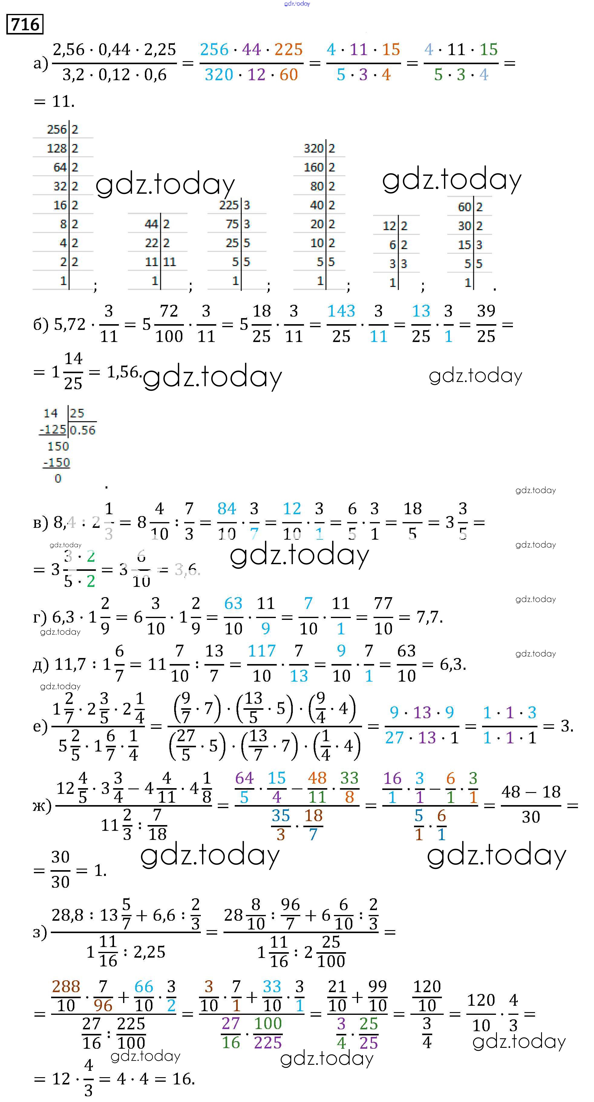 Ответы к §3. Умножение и деление обыкновенных дробей Решение к главе 1 716 Учебнику по Математике для 6 класса Виленкин, Жохов Мнемозина 2014