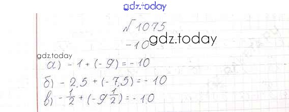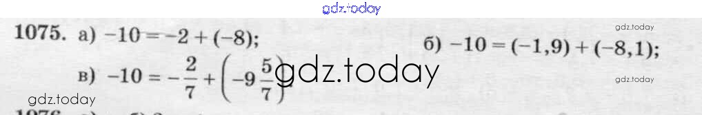 Ответы к §6. Сложение и вычитание положительных и отрицательных чисел Решение к главе 2 1075 Учебнику по Математике для 6 класса Виленкин, Жохов Мнемозина 2014