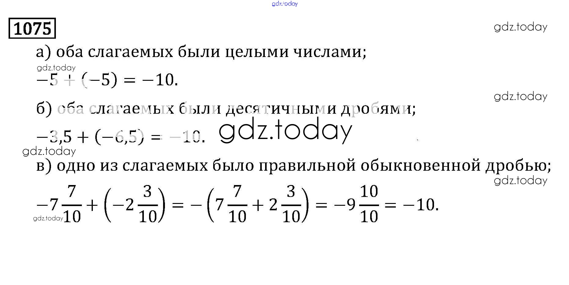 На страницах сайта gdz.today вы найдете учебный и вспомогательный материал, направленный на улучшения знаний школьной программы. ГДЗ - онлайн мир знаний §6. Сложение и вычитание положительных и отрицательных чисел Решение к главе 2 1075 Учебнику по Математике для 6 класса Виленкин, Жохов Мнемозина 2014