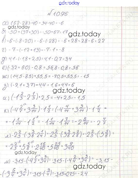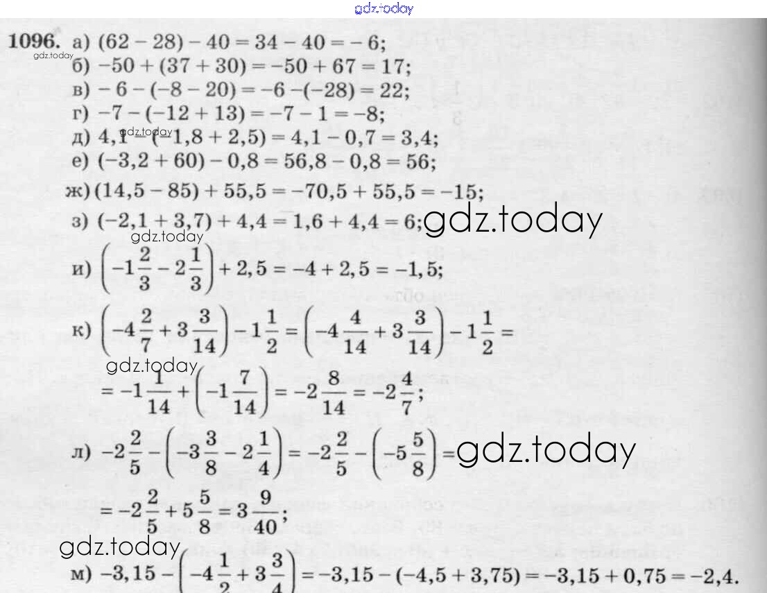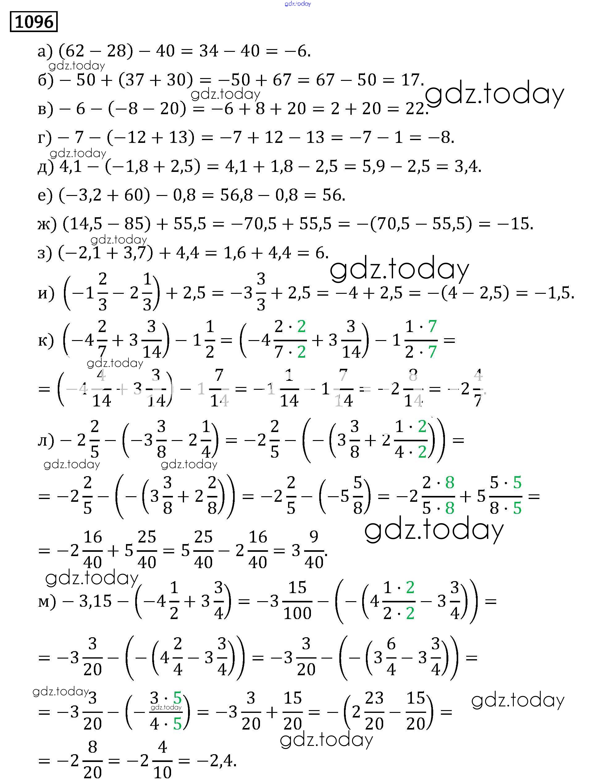 На страницах сайта gdz.today вы найдете учебный и вспомогательный материал, направленный на улучшения знаний школьной программы. ГДЗ - онлайн мир знаний §6. Сложение и вычитание положительных и отрицательных чисел Решение к главе 2 1096 Учебнику по Математике для 6 класса Виленкин, Жохов Мнемозина 2014