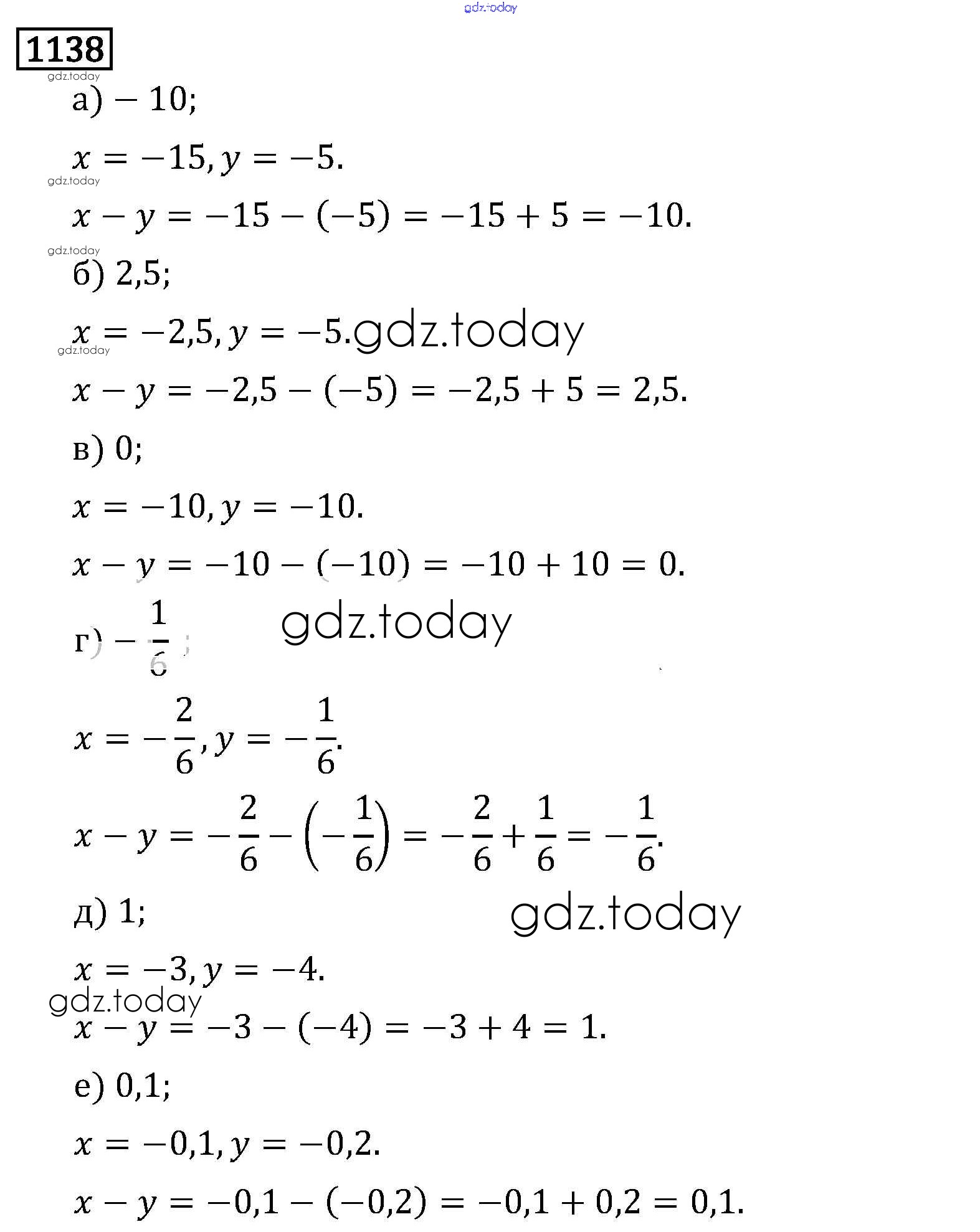 Ответы к §7. Умножение и деление положительных и отрицательных чисел Решение к главе 2 1138 Учебнику по Математике для 6 класса Виленкин, Жохов Мнемозина 2014