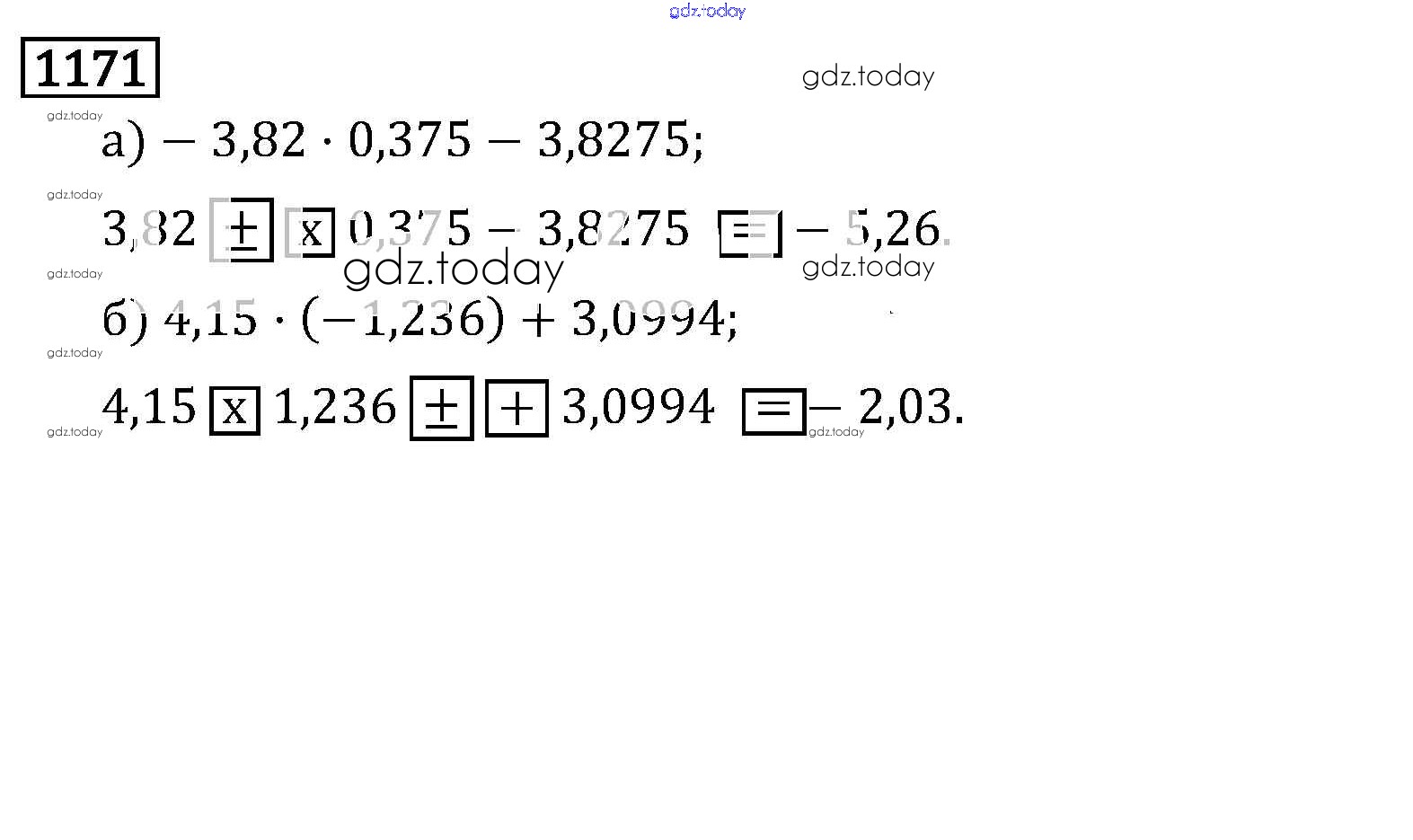 На страницах сайта gdz.today вы найдете учебный и вспомогательный материал, направленный на улучшения знаний школьной программы. ГДЗ - онлайн мир знаний §7. Умножение и деление положительных и отрицательных чисел Решение к главе 2 1171 Учебнику по Математике для 6 класса Виленкин, Жохов Мнемозина 2014