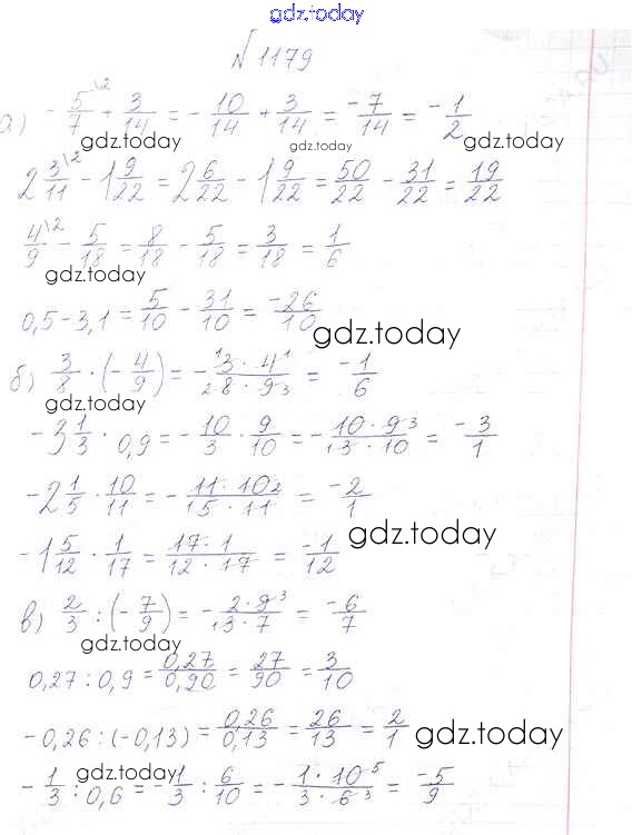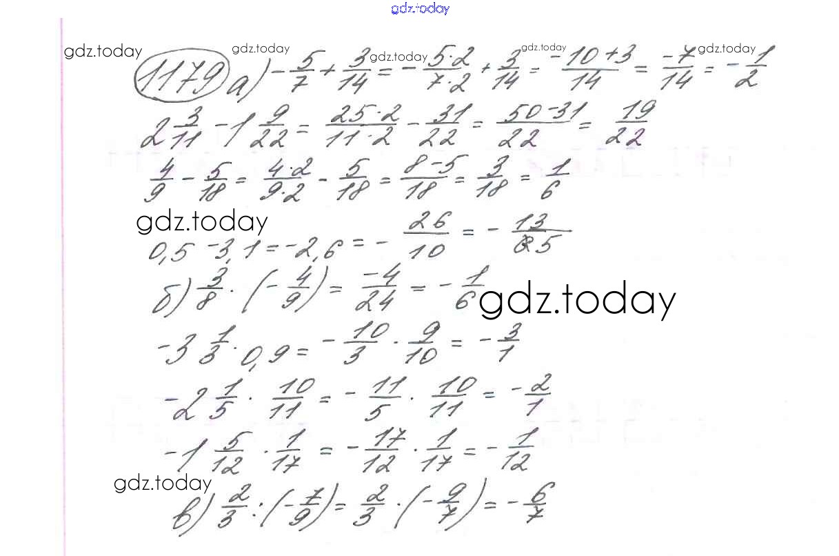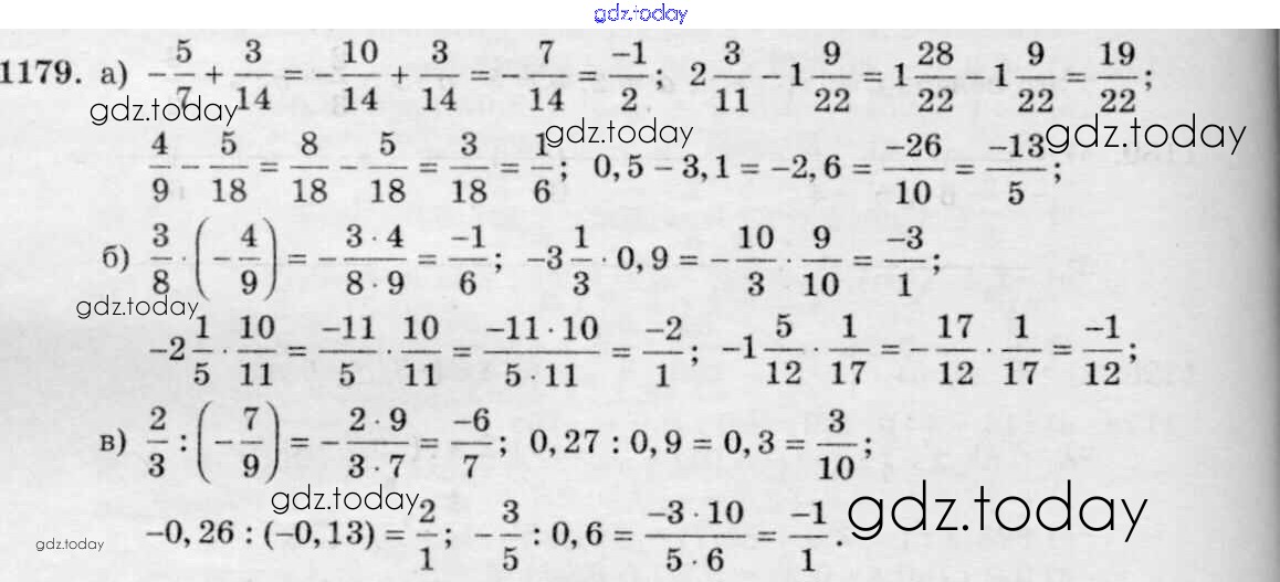 Ответы к §7. Умножение и деление положительных и отрицательных чисел Решение к главе 2 1179 Учебнику по Математике для 6 класса Виленкин, Жохов Мнемозина 2014