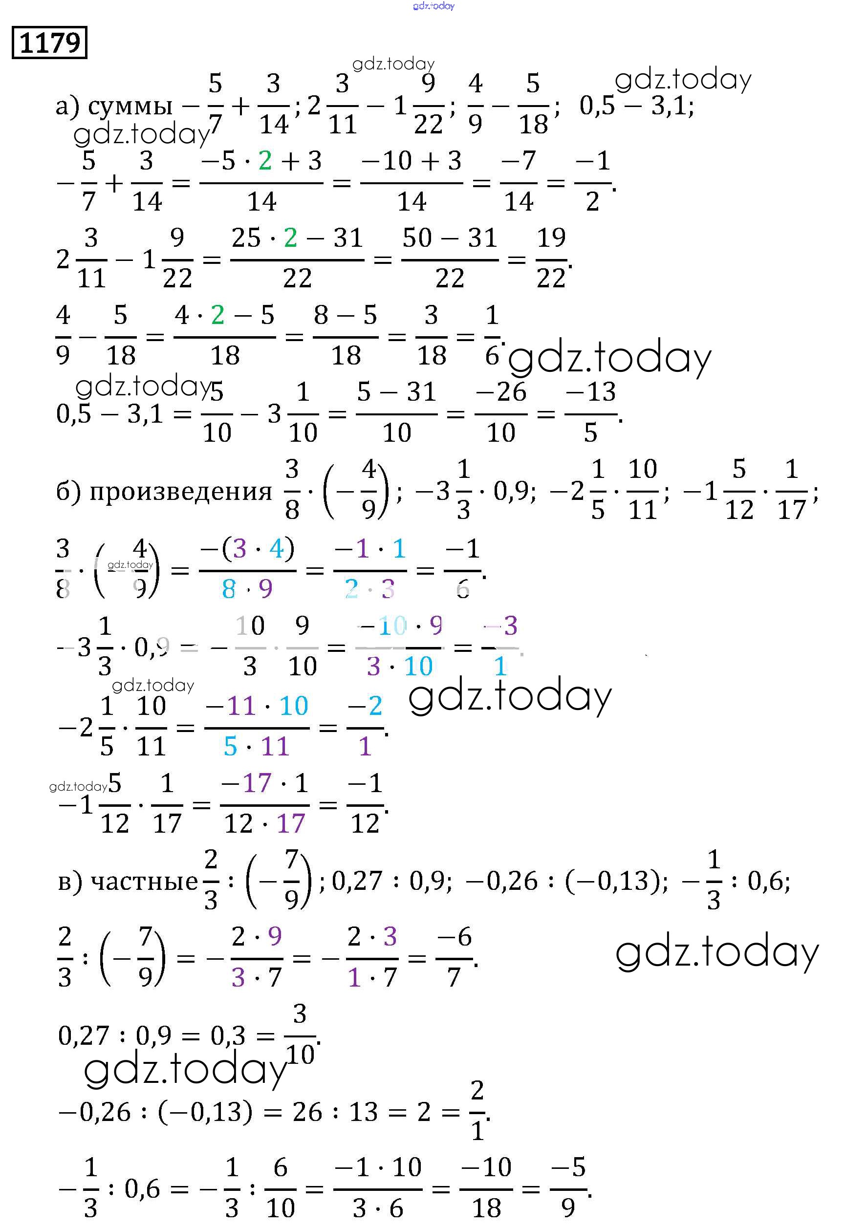На страницах сайта gdz.today вы найдете учебный и вспомогательный материал, направленный на улучшения знаний школьной программы. ГДЗ - онлайн мир знаний §7. Умножение и деление положительных и отрицательных чисел Решение к главе 2 1179 Учебнику по Математике для 6 класса Виленкин, Жохов Мнемозина 2014