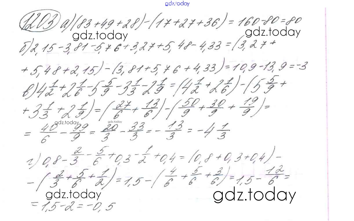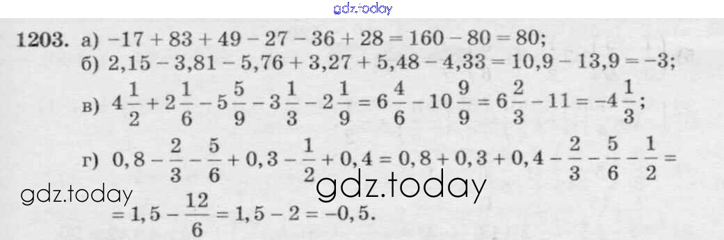 Ответы к §7. Умножение и деление положительных и отрицательных чисел Решение к главе 2 1203 Учебнику по Математике для 6 класса Виленкин, Жохов Мнемозина 2014