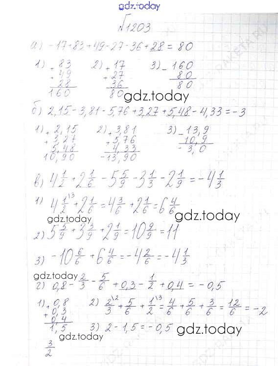 На страницах сайта gdz.today вы найдете учебный и вспомогательный материал, направленный на улучшения знаний школьной программы. ГДЗ - онлайн мир знаний §7. Умножение и деление положительных и отрицательных чисел Решение к главе 2 1203 Учебнику по Математике для 6 класса Виленкин, Жохов Мнемозина 2014
