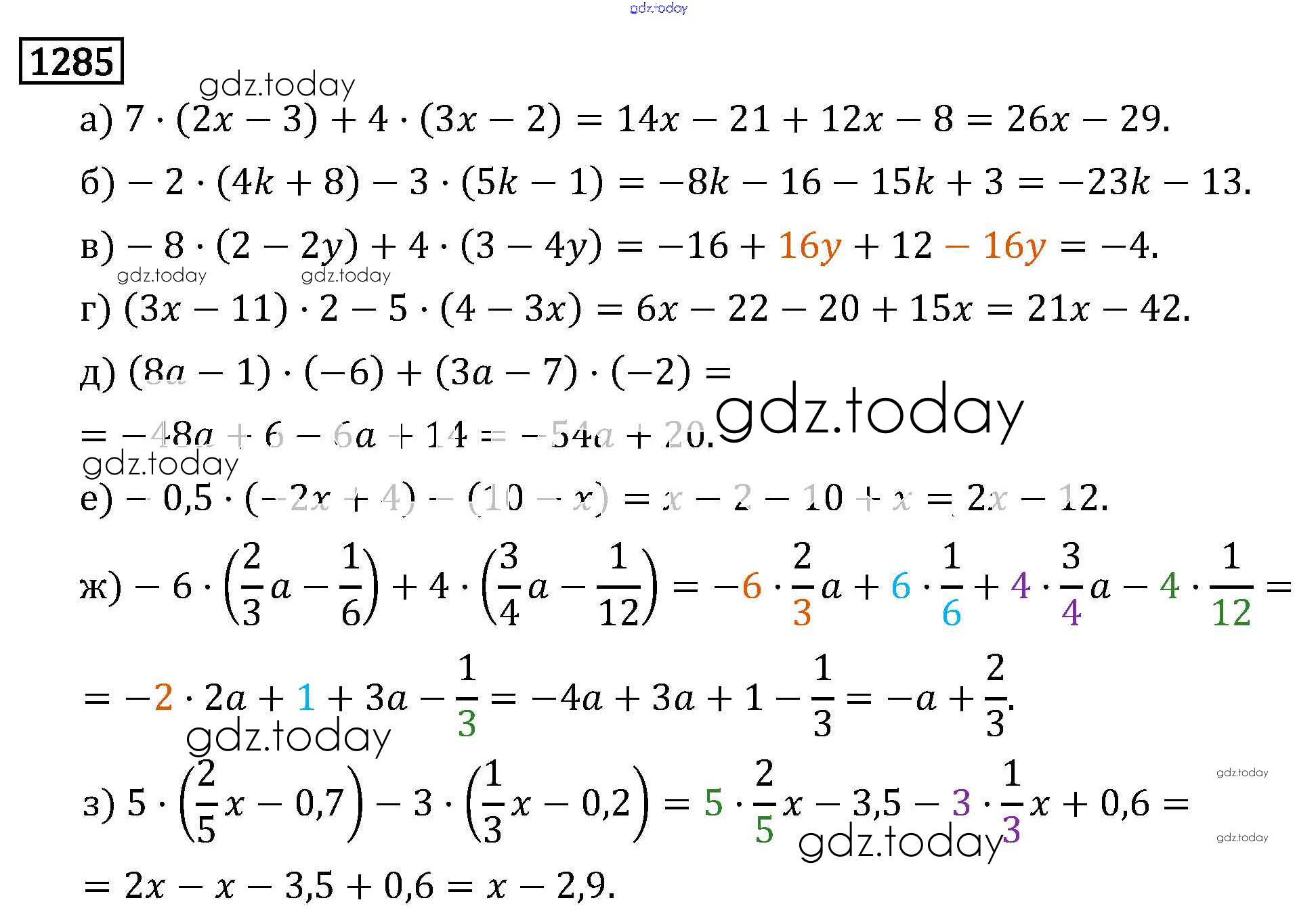 На страницах сайта gdz.today вы найдете учебный и вспомогательный материал, направленный на улучшения знаний школьной программы. ГДЗ - онлайн мир знаний §8. Решение уравнений Решение к главе 2 1285 Учебнику по Математике для 6 класса Виленкин, Жохов Мнемозина 2014