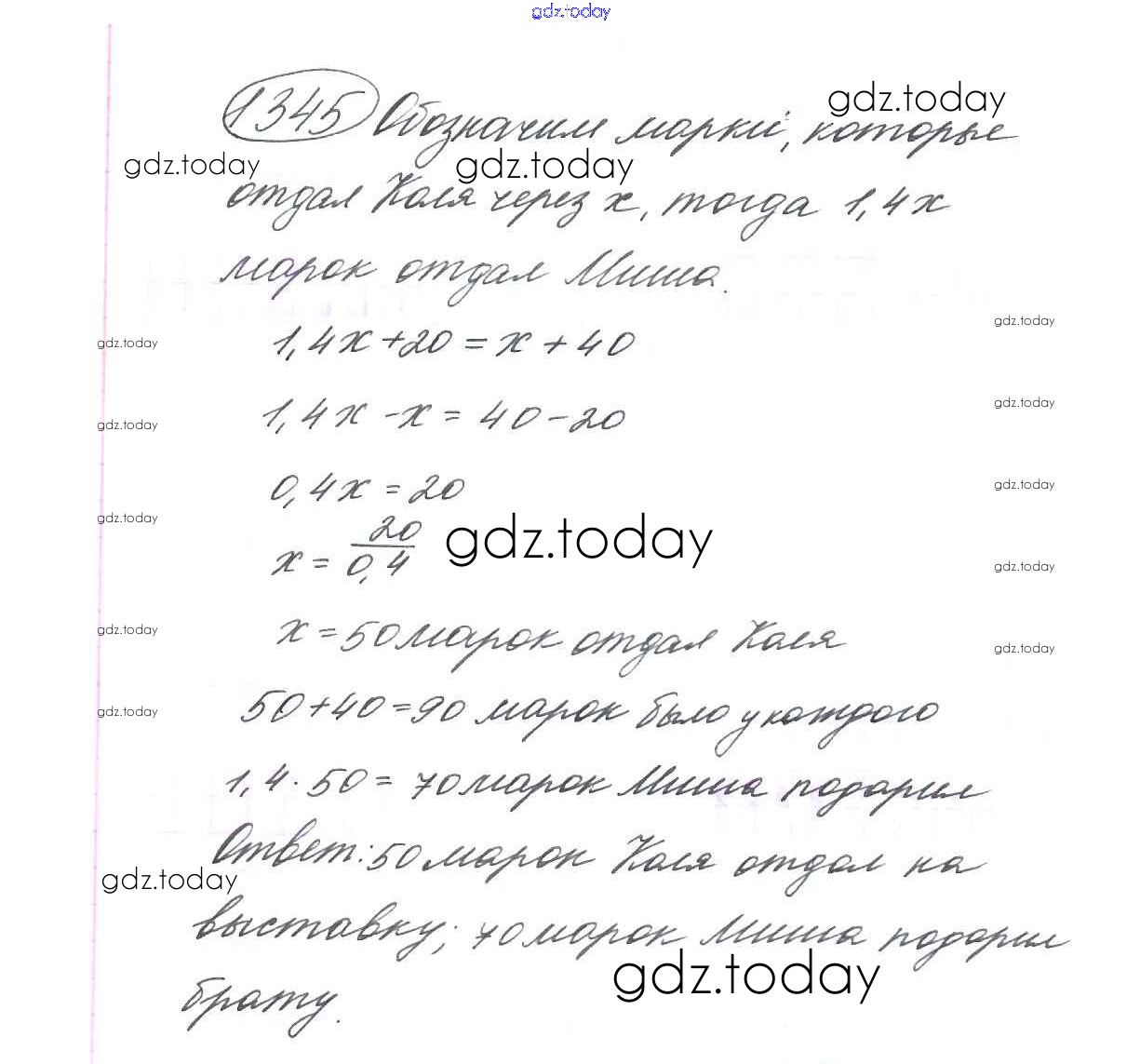 Ответы к §8. Решение уравнений Решение к главе 2 1345 Учебнику по Математике для 6 класса Виленкин, Жохов Мнемозина 2014