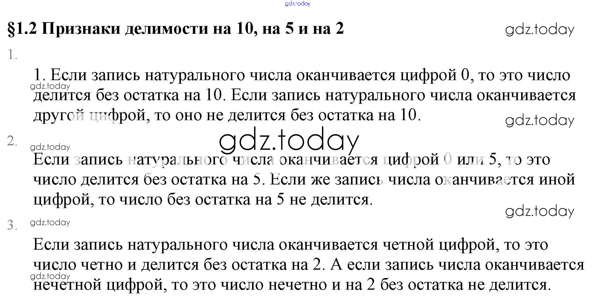 На страницах сайта gdz.today вы найдете учебный и вспомогательный материал, направленный на улучшения знаний школьной программы. ГДЗ - онлайн мир знаний Вопросы к параграфу §1. Делимость чисел 1.2 Учебнику по Математике для 6 класса Виленкин, Жохов Мнемозина 2014