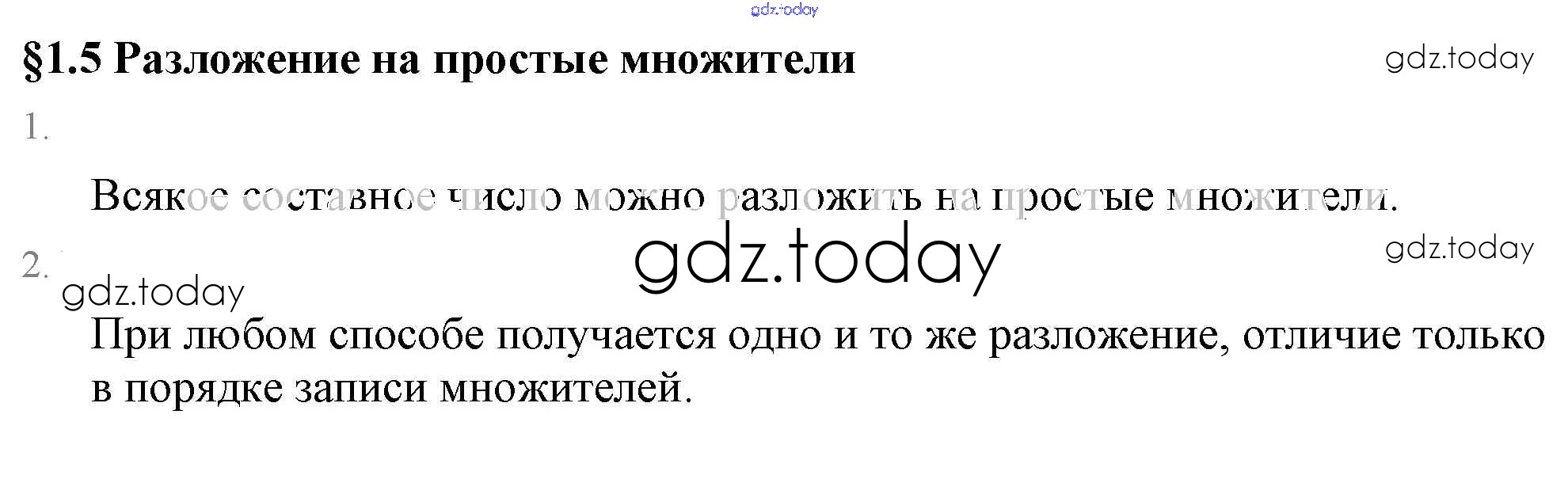 На страницах сайта gdz.today вы найдете учебный и вспомогательный материал, направленный на улучшения знаний школьной программы. ГДЗ - онлайн мир знаний Вопросы к параграфу §1. Делимость чисел 1.5 Учебнику по Математике для 6 класса Виленкин, Жохов Мнемозина 2014
