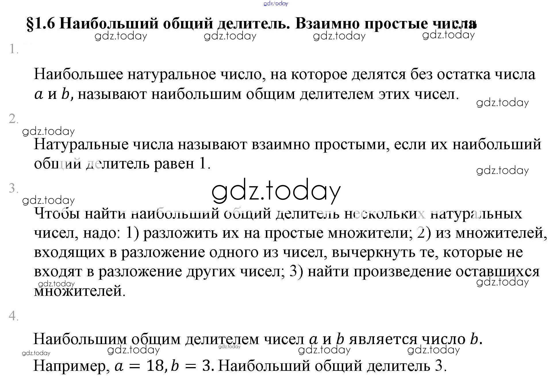 На страницах сайта gdz.today вы найдете учебный и вспомогательный материал, направленный на улучшения знаний школьной программы. ГДЗ - онлайн мир знаний Вопросы к параграфу §1. Делимость чисел 1.6 Учебнику по Математике для 6 класса Виленкин, Жохов Мнемозина 2014