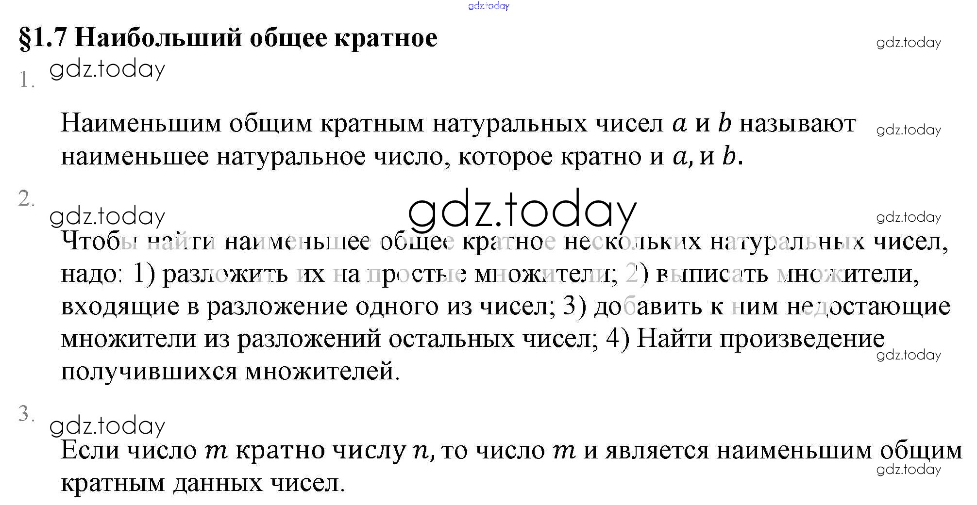 На страницах сайта gdz.today вы найдете учебный и вспомогательный материал, направленный на улучшения знаний школьной программы. ГДЗ - онлайн мир знаний Вопросы к параграфу §1. Делимость чисел 1.7 Учебнику по Математике для 6 класса Виленкин, Жохов Мнемозина 2014
