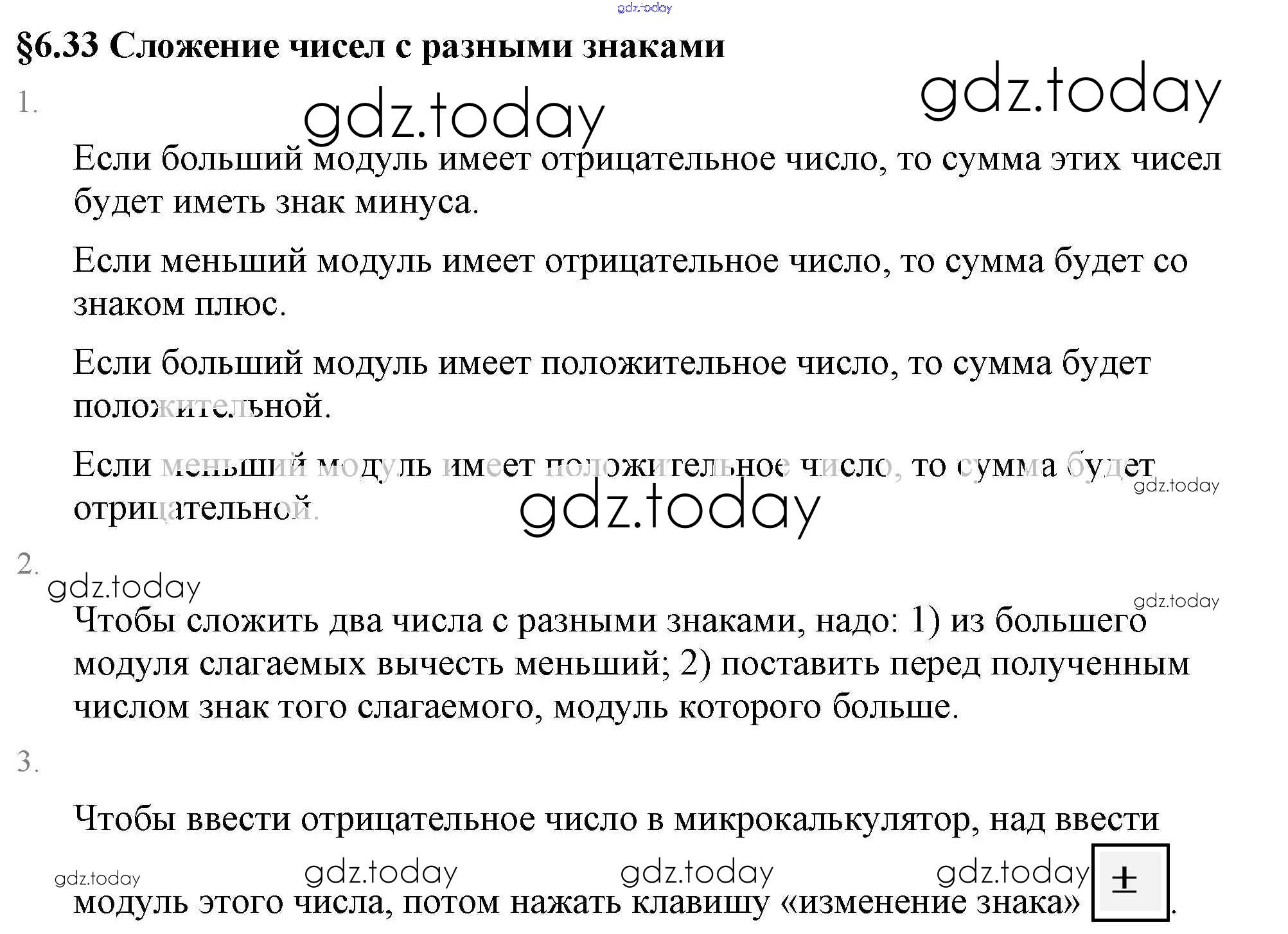 На страницах сайта gdz.today вы найдете учебный и вспомогательный материал, направленный на улучшения знаний школьной программы. ГДЗ - онлайн мир знаний Вопросы к параграфу §6. Сложение и вычитание положительных и отрицательных чисел 6.33 Учебнику по Математике для 6 класса Виленкин, Жохов Мнемозина 2014