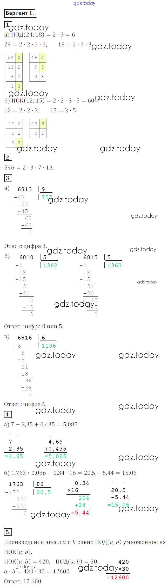 Ответы к Решение к КР-1. Варианты 1 Контрольным работам по Математике для 6 класса Жохов, Крайнева Мнемозина 2011