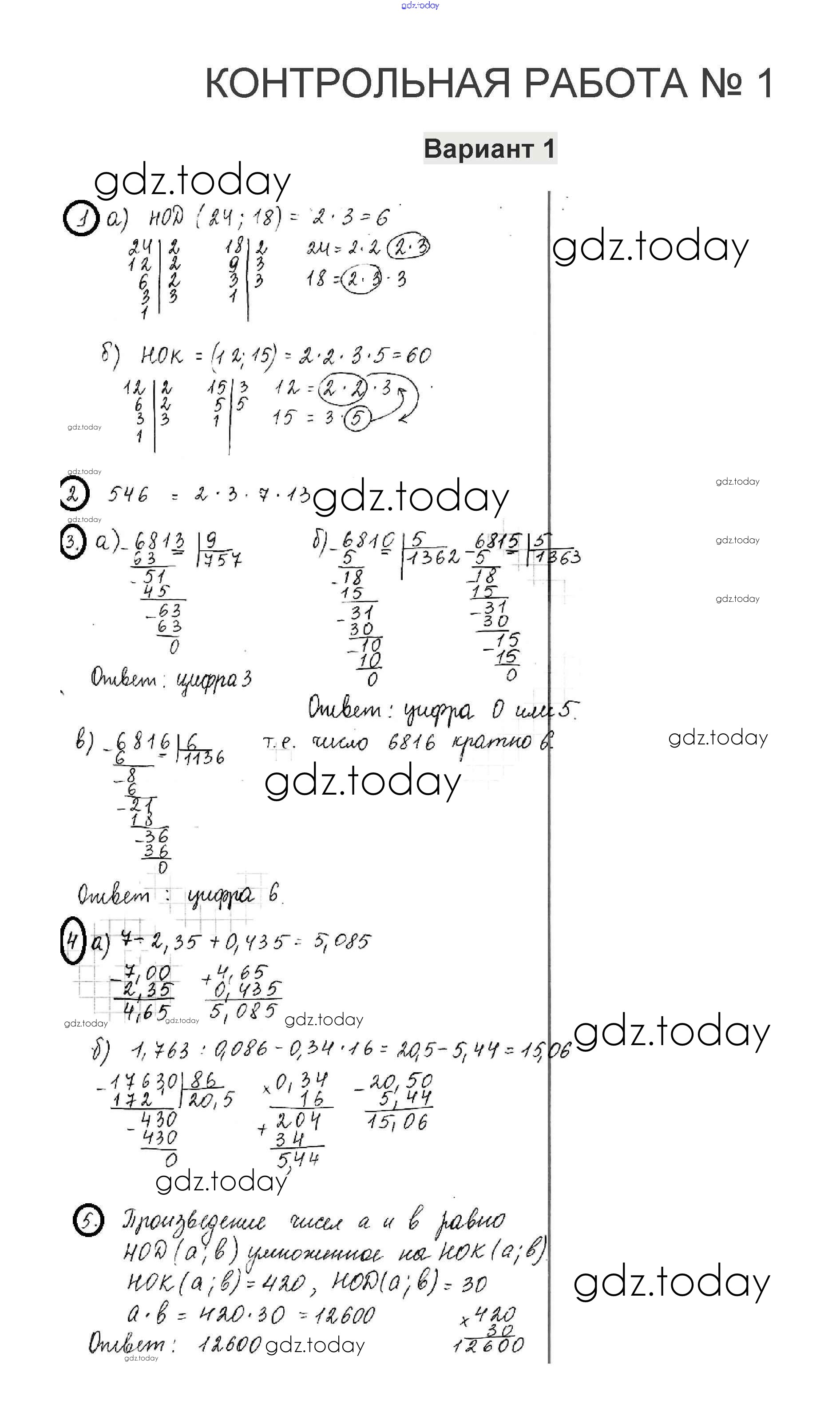 На страницах сайта gdz.today вы найдете учебный и вспомогательный материал, направленный на улучшения знаний школьной программы. ГДЗ - онлайн мир знаний Решение к КР-1. Варианты 1 Контрольным работам по Математике для 6 класса Жохов, Крайнева Мнемозина 2011
