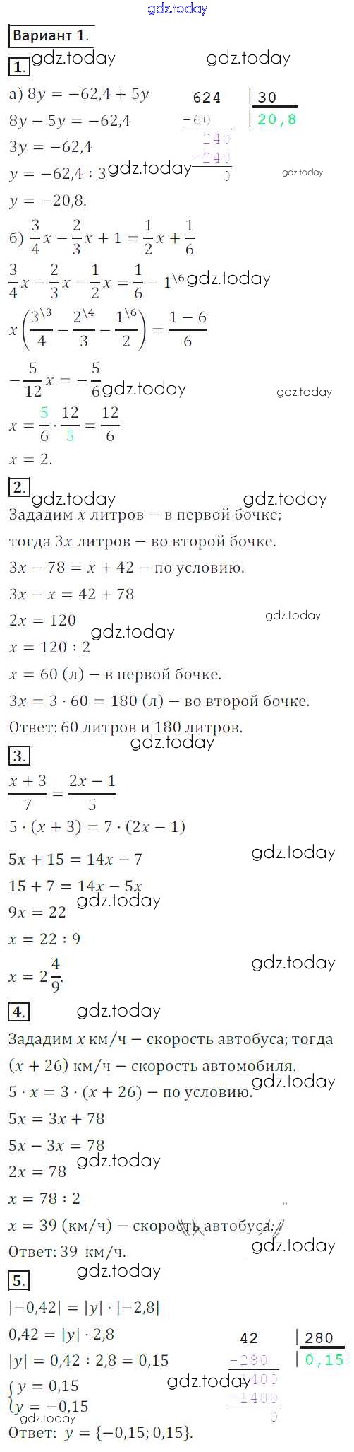 Ответы к Решение к КР-13. Варианты 1 Контрольным работам по Математике для 6 класса Жохов, Крайнева Мнемозина 2011