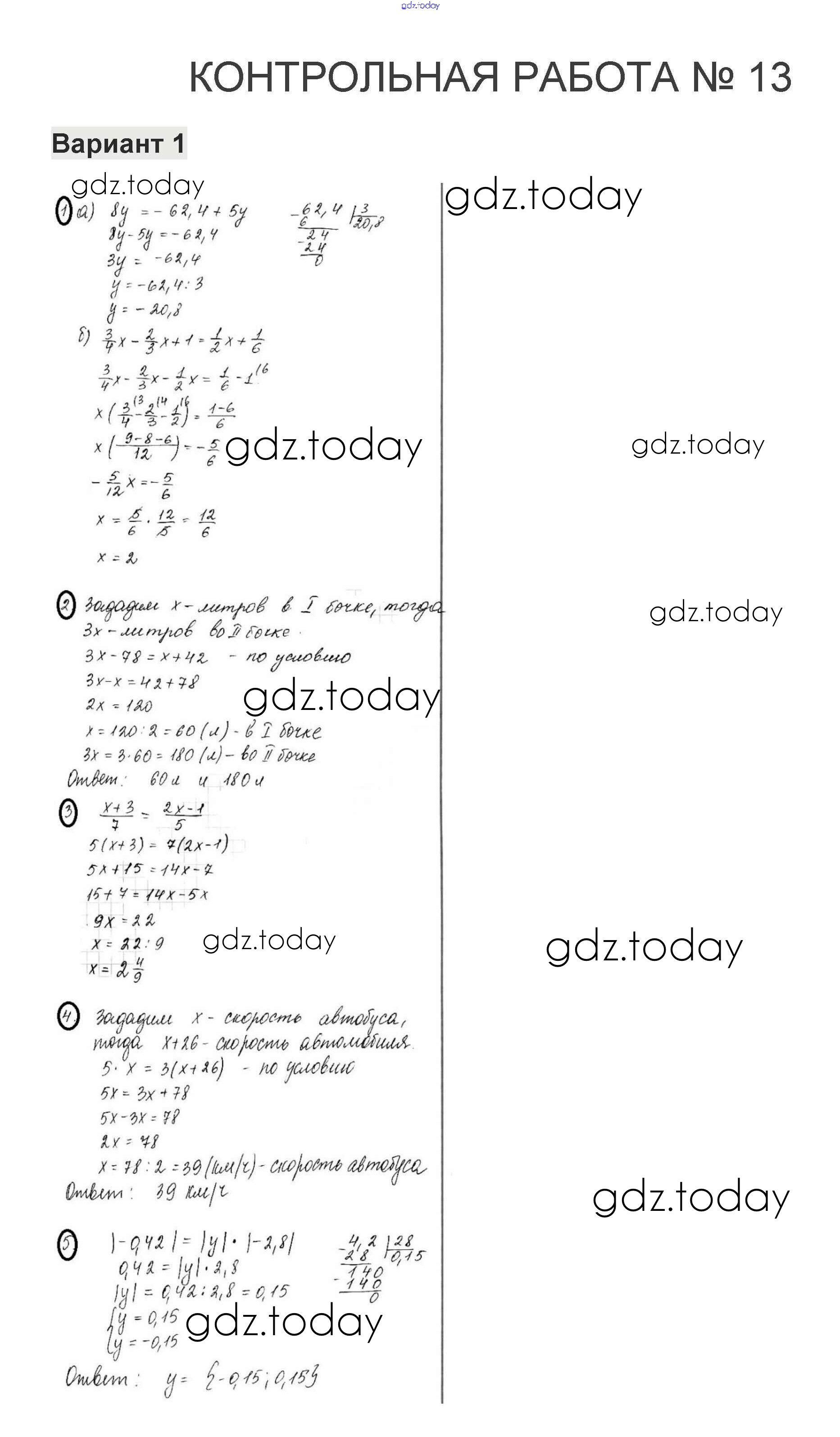 На страницах сайта gdz.today вы найдете учебный и вспомогательный материал, направленный на улучшения знаний школьной программы. ГДЗ - онлайн мир знаний Решение к КР-13. Варианты 1 Контрольным работам по Математике для 6 класса Жохов, Крайнева Мнемозина 2011
