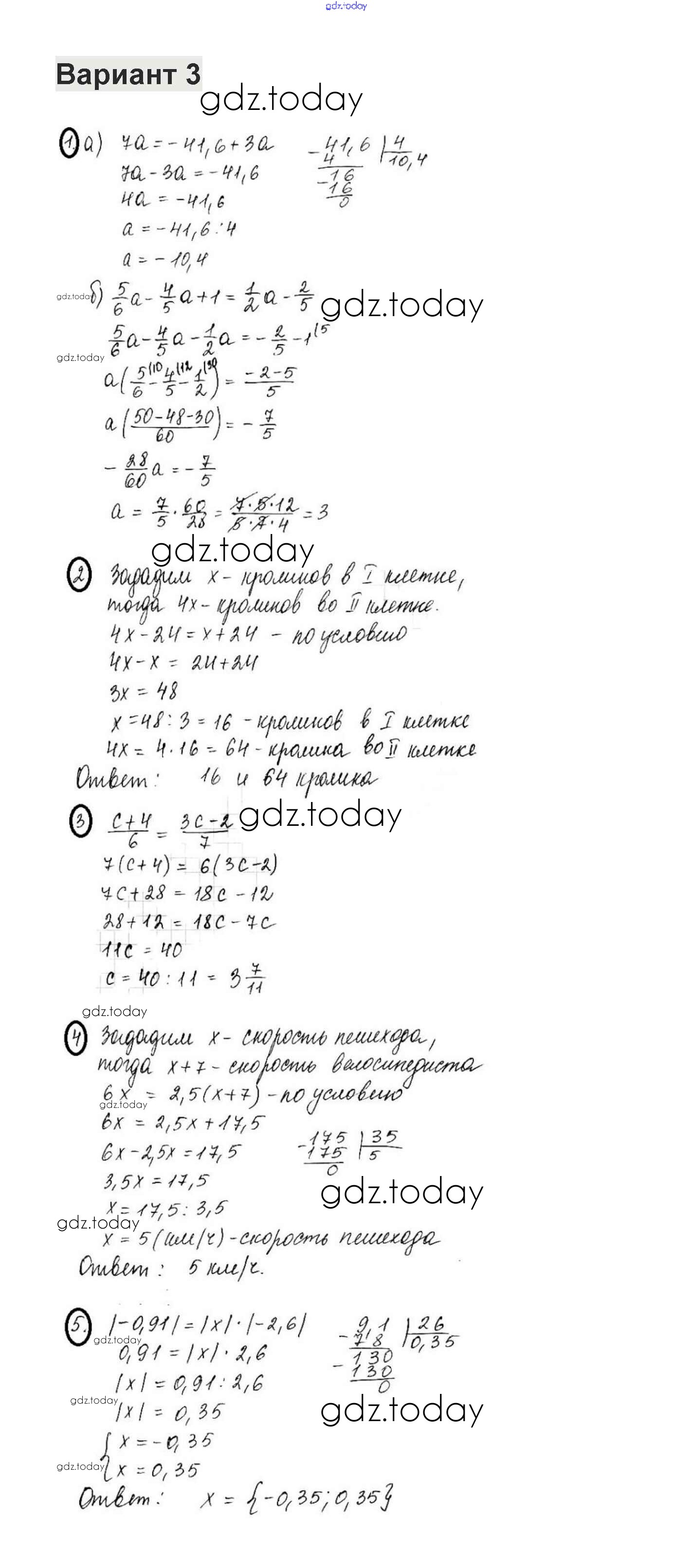 Ответы к Решение к КР-13. Варианты 3 Контрольным работам по Математике для 6 класса Жохов, Крайнева Мнемозина 2011