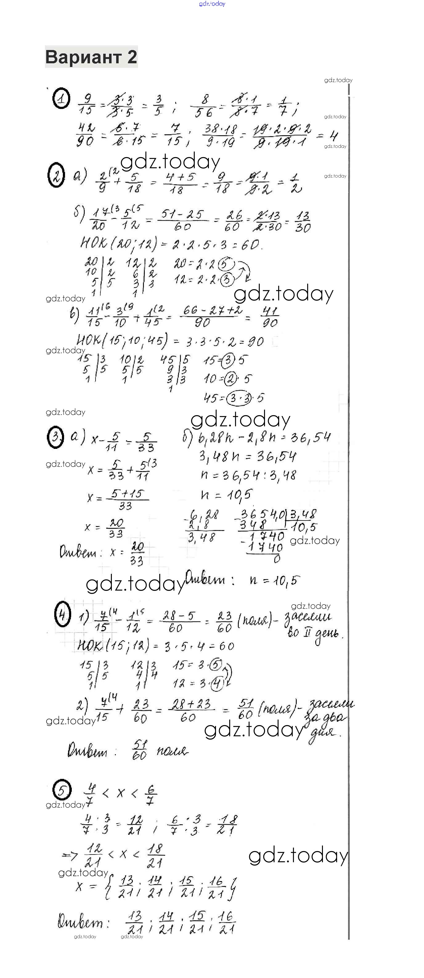 Ответы к Решение к КР-2. Варианты 2 Контрольным работам по Математике для 6 класса Жохов, Крайнева Мнемозина 2011