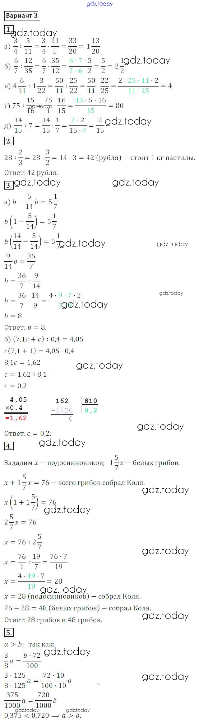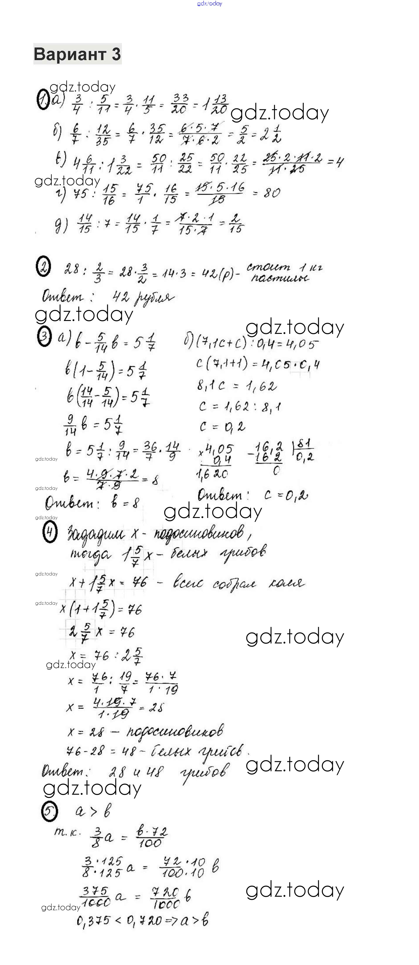 Ответы к Решение к КР-5. Варианты 3 Контрольным работам по Математике для 6 класса Жохов, Крайнева Мнемозина 2011