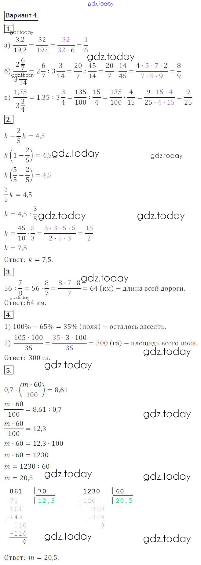 Ответы к Решение к КР-6. Варианты 4 Контрольным работам по Математике для 6 класса Жохов, Крайнева Мнемозина 2011