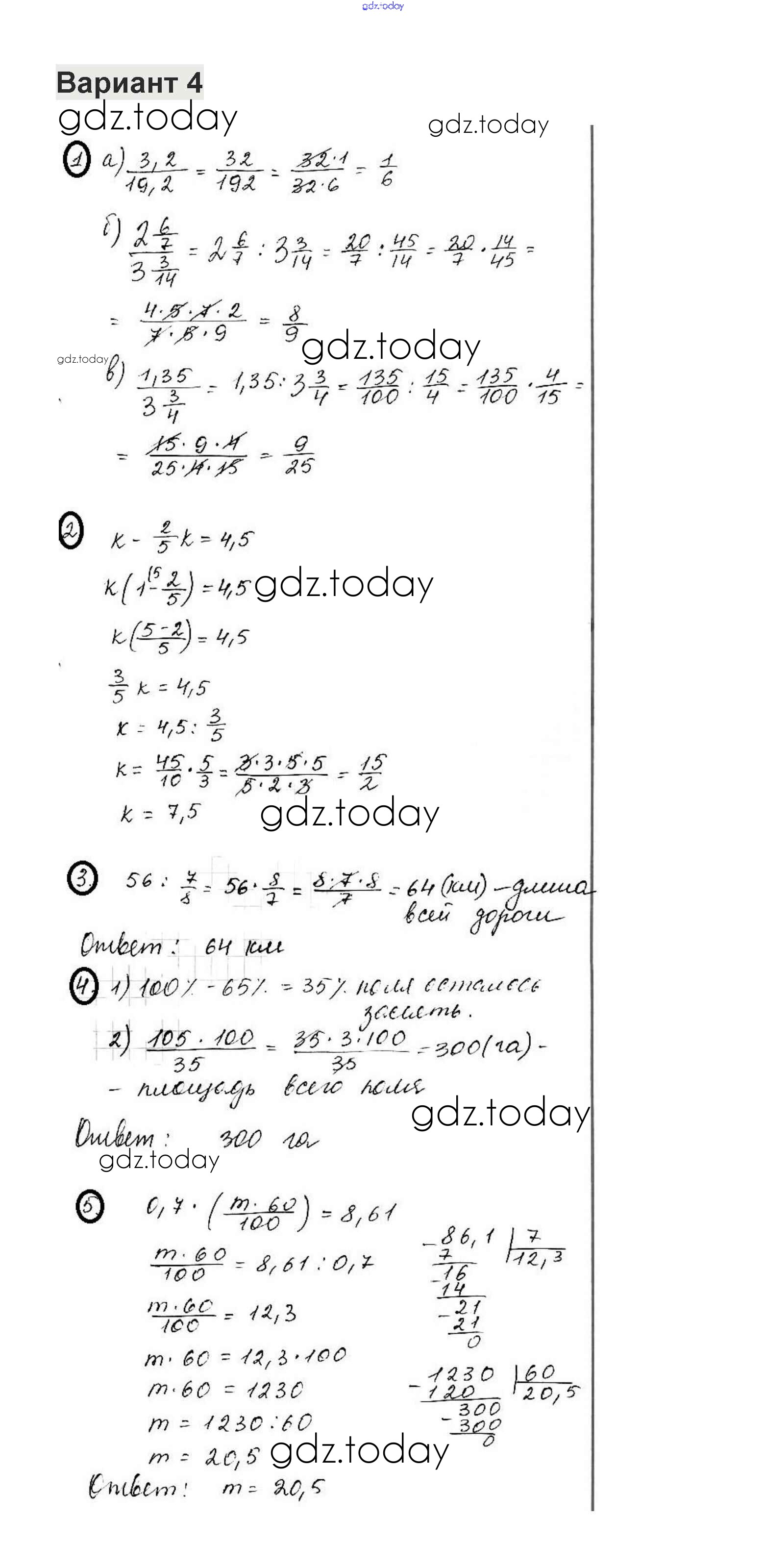 На страницах сайта gdz.today вы найдете учебный и вспомогательный материал, направленный на улучшения знаний школьной программы. ГДЗ - онлайн мир знаний Решение к КР-6. Варианты 4 Контрольным работам по Математике для 6 класса Жохов, Крайнева Мнемозина 2011