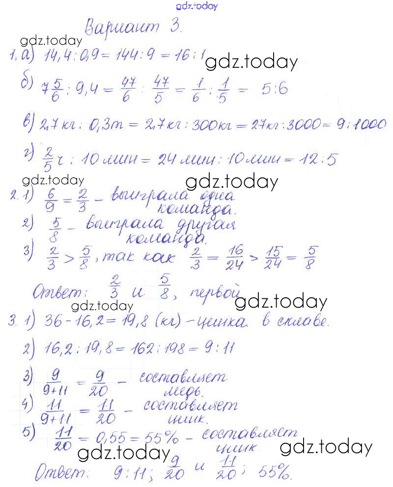 Ответы к СР-20. Варианты Решение к самостоятельным работам 3 Контрольным и самостоятельным работам по Математике для 6 класса Журавлев, Изотова Экзамен УМК 2015