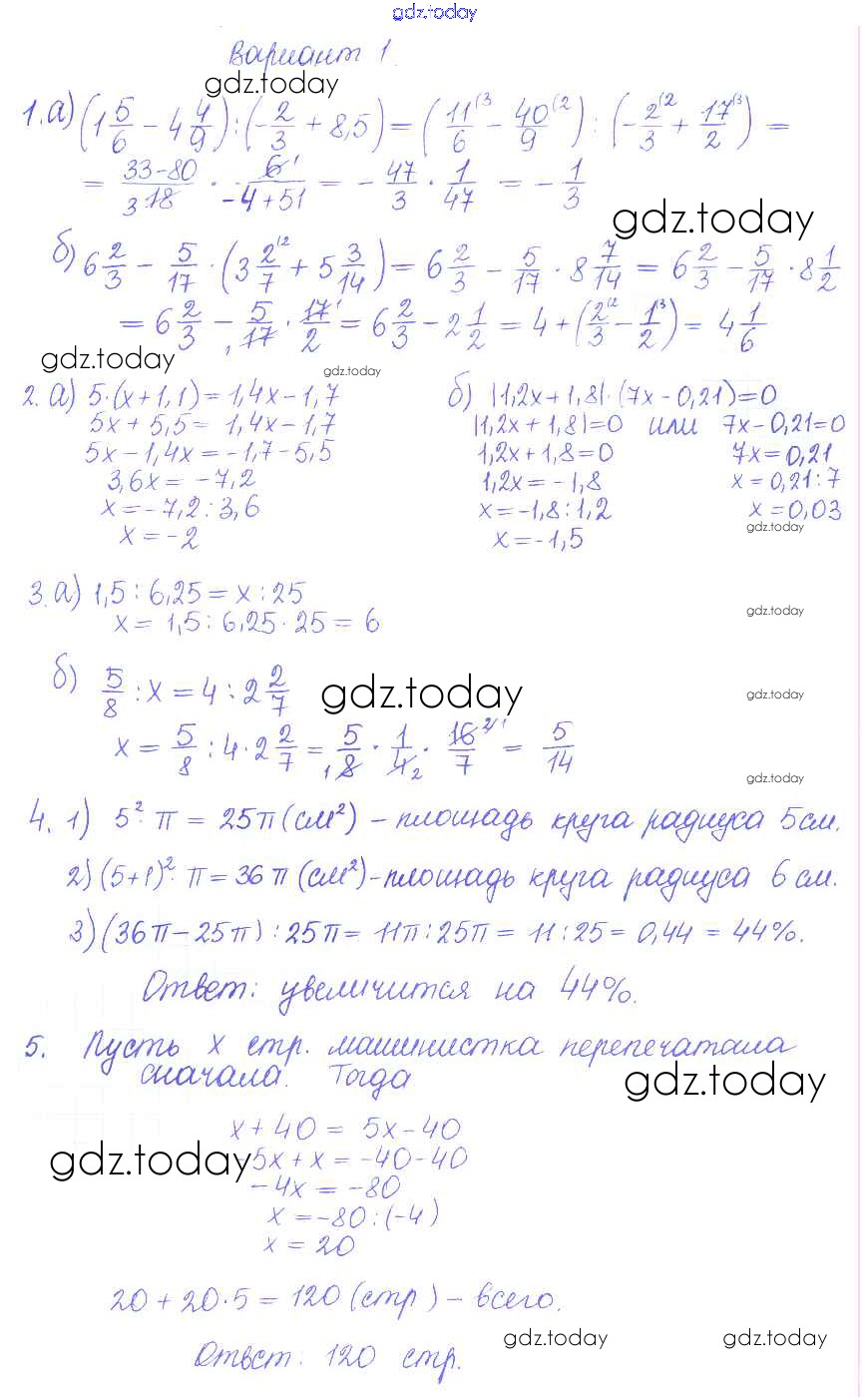 Ответы к КР-10. Варианты Решение к контрольным работам 1 Контрольным и самостоятельным работам по Математике для 6 класса Журавлев, Изотова Экзамен УМК 2015