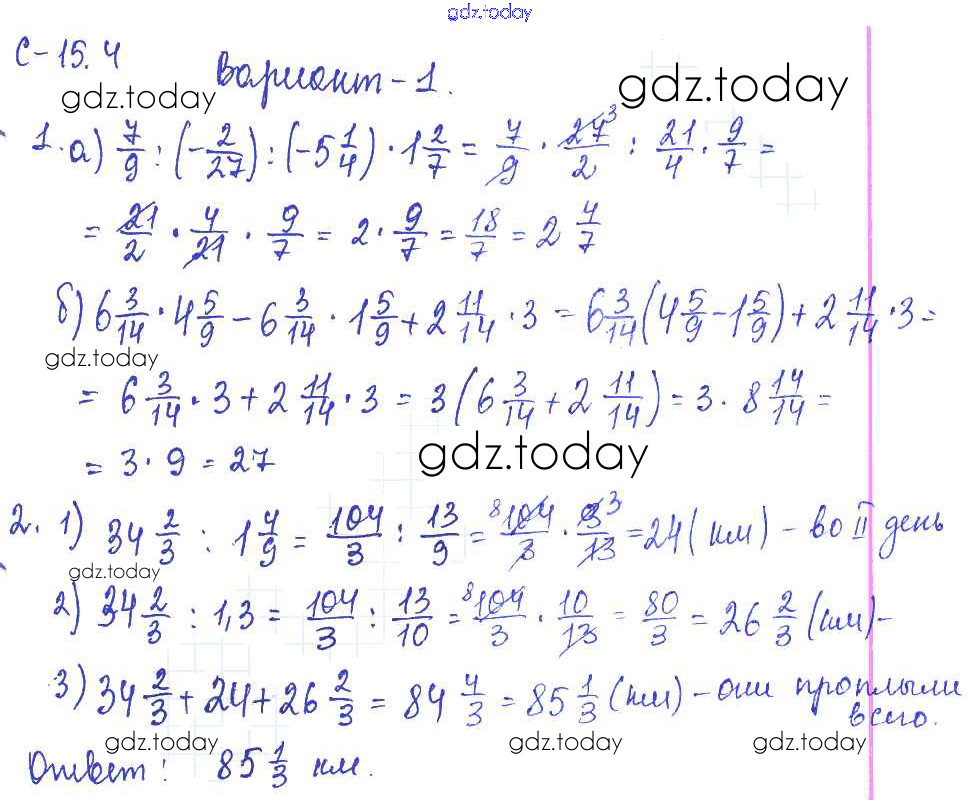 Ответы к 4. Варианты Решение к СР-15 1 Самостоятельным работам по Математике для 6 класса Зубарева, Лепешонкова Мнемозина УМК 2020