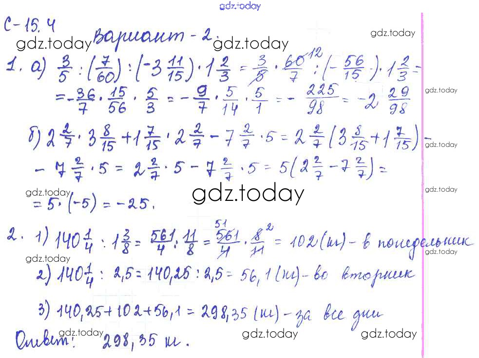 Ответы к 4. Варианты Решение к СР-15 2 Самостоятельным работам по Математике для 6 класса Зубарева, Лепешонкова Мнемозина УМК 2020