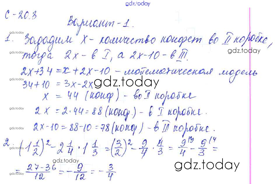 Ответы к 3. Варианты Решение к СР-20 1 Самостоятельным работам по Математике для 6 класса Зубарева, Лепешонкова Мнемозина УМК 2020