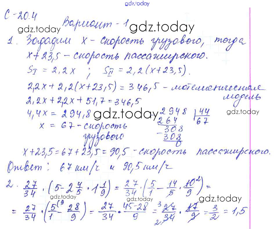 Ответы к 4. Варианты Решение к СР-20 1 Самостоятельным работам по Математике для 6 класса Зубарева, Лепешонкова Мнемозина УМК 2020