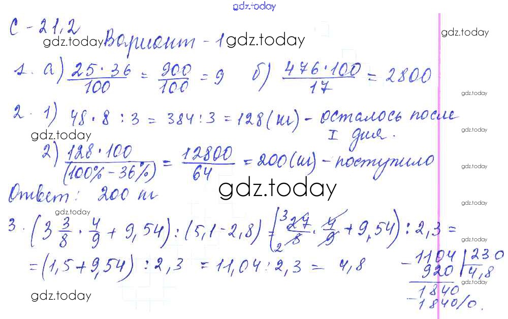 Ответы к 2. Варианты Решение к СР-21 1 Самостоятельным работам по Математике для 6 класса Зубарева, Лепешонкова Мнемозина УМК 2020