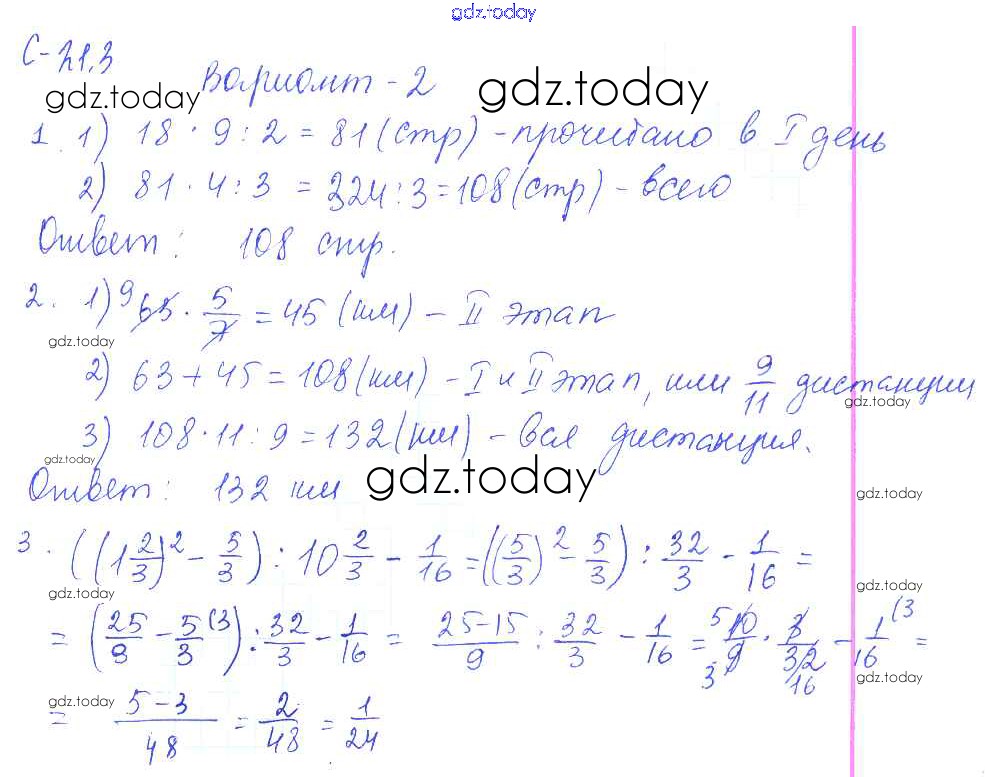 Ответы к 3. Варианты Решение к СР-21 2 Самостоятельным работам по Математике для 6 класса Зубарева, Лепешонкова Мнемозина УМК 2020