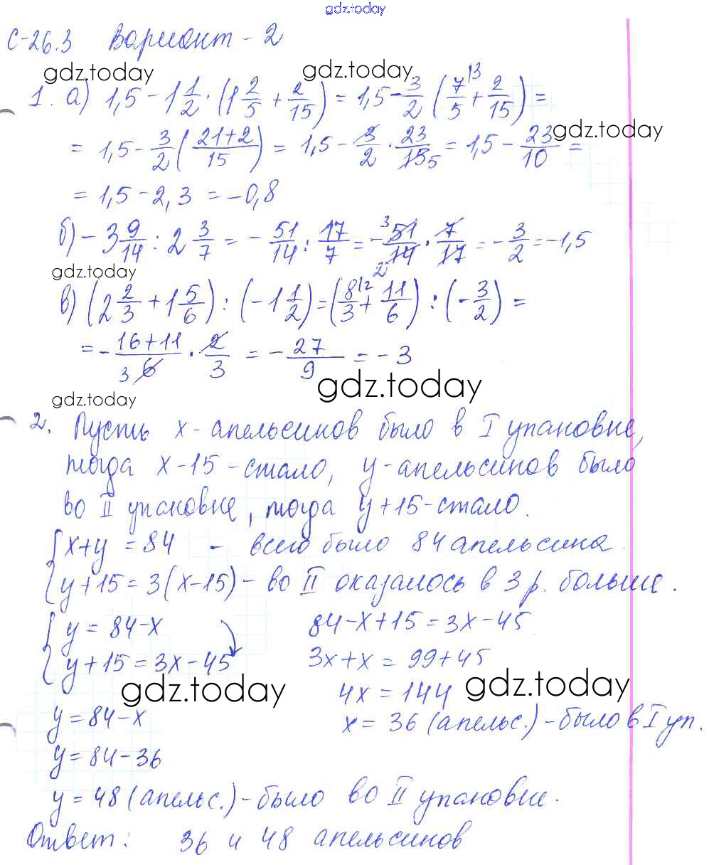 Ответы к 3. Варианты Решение к СР-26 2 Самостоятельным работам по Математике для 6 класса Зубарева, Лепешонкова Мнемозина УМК 2020