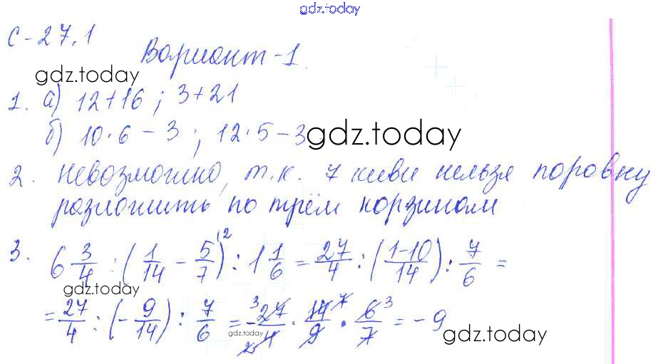 На страницах сайта gdz.today вы найдете учебный и вспомогательный материал, направленный на улучшения знаний школьной программы. ГДЗ - онлайн мир знаний 1. Варианты Решение к СР-27 1 Самостоятельным работам по Математике для 6 класса Зубарева, Лепешонкова Мнемозина УМК 2020