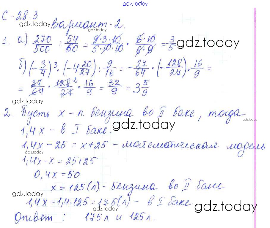 Ответы к 3. Варианты Решение к СР-28 2 Самостоятельным работам по Математике для 6 класса Зубарева, Лепешонкова Мнемозина УМК 2020