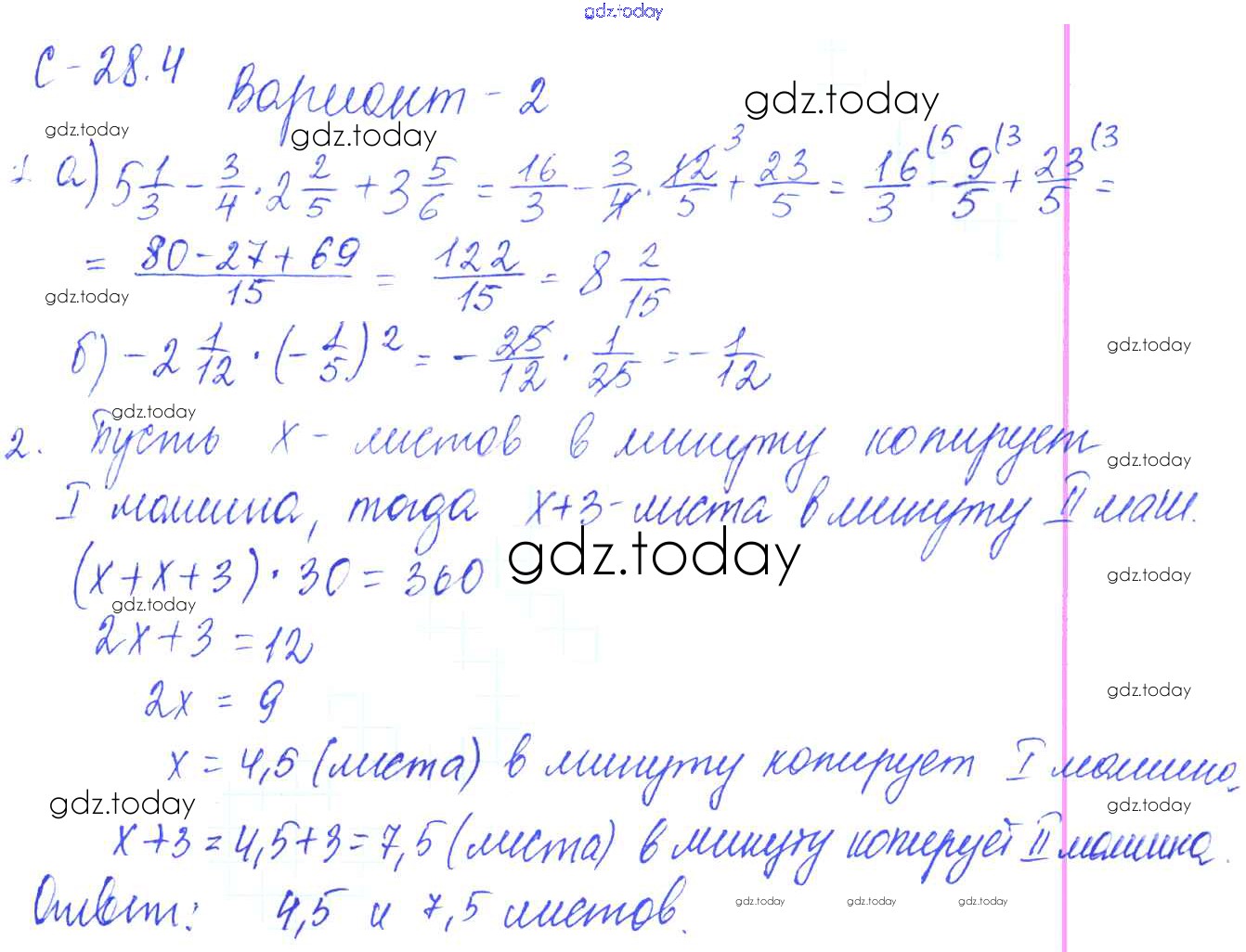 Ответы к 4. Варианты Решение к СР-28 2 Самостоятельным работам по Математике для 6 класса Зубарева, Лепешонкова Мнемозина УМК 2020