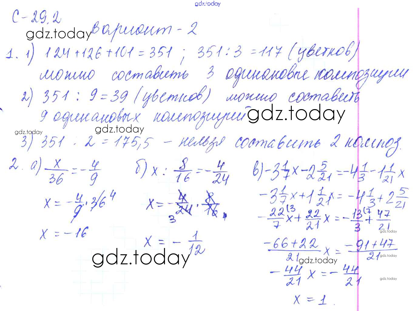 Ответы к 2. Варианты Решение к СР-29 2 Самостоятельным работам по Математике для 6 класса Зубарева, Лепешонкова Мнемозина УМК 2020