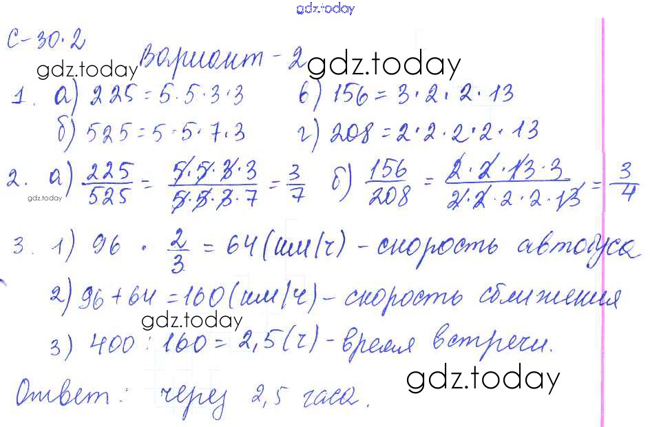 Ответы к 2. Варианты Решение к СР-30 2 Самостоятельным работам по Математике для 6 класса Зубарева, Лепешонкова Мнемозина УМК 2020
