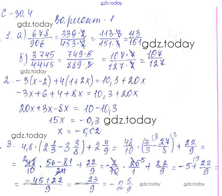 Ответы к 4. Варианты Решение к СР-30 1 Самостоятельным работам по Математике для 6 класса Зубарева, Лепешонкова Мнемозина УМК 2020