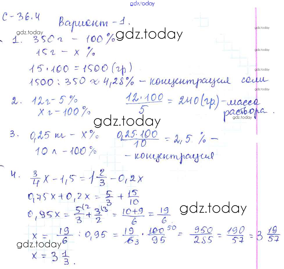 Ответы к 4. Варианты Решение к СР-36 1 Самостоятельным работам по Математике для 6 класса Зубарева, Лепешонкова Мнемозина УМК 2020